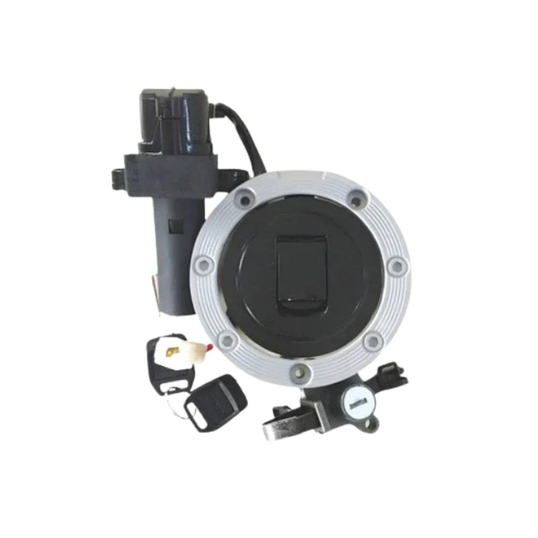Lock Set is a collection of mechanical and electronic locks that secure different parts of the motorcycle and prevent unauthorized use or theft. The lock set includes an ignition lock, a petrol tank cap lock, a seat lock, and a handle lock. Lock sets ensure the safety of the bike, convenience, and prevention of theft. Lock Set is mandatory for every bike and scooter.
