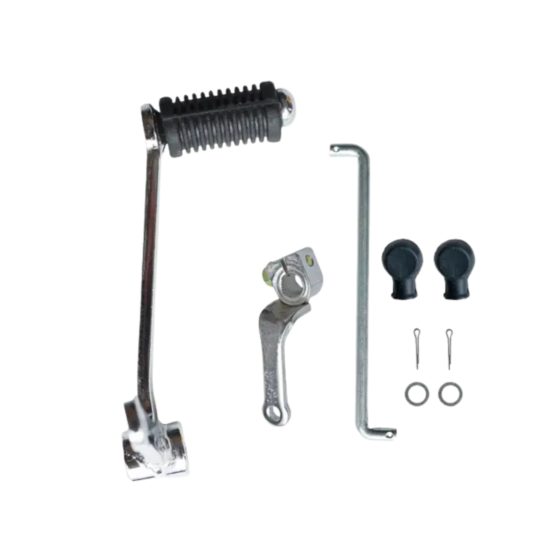 Transfers rider’s foot input to the gear shifting mechanism. The Gear Pedal is a mechanical component mounted on the side of a motorcycle that allows the rider to manually shift gears using their foot. It is one of the primary input controls for changing transmission ratios and is directly linked to the gearbox system. Gear Pedal Transfers rider’s foot input to the gear shifting mechanism. Gear Pedal is generally used for High strength, fatigue resistance, easily formable. Gear pedal is generally made up of ferrous metal and manufactured by Forged or CNC-machined from steel blanks.